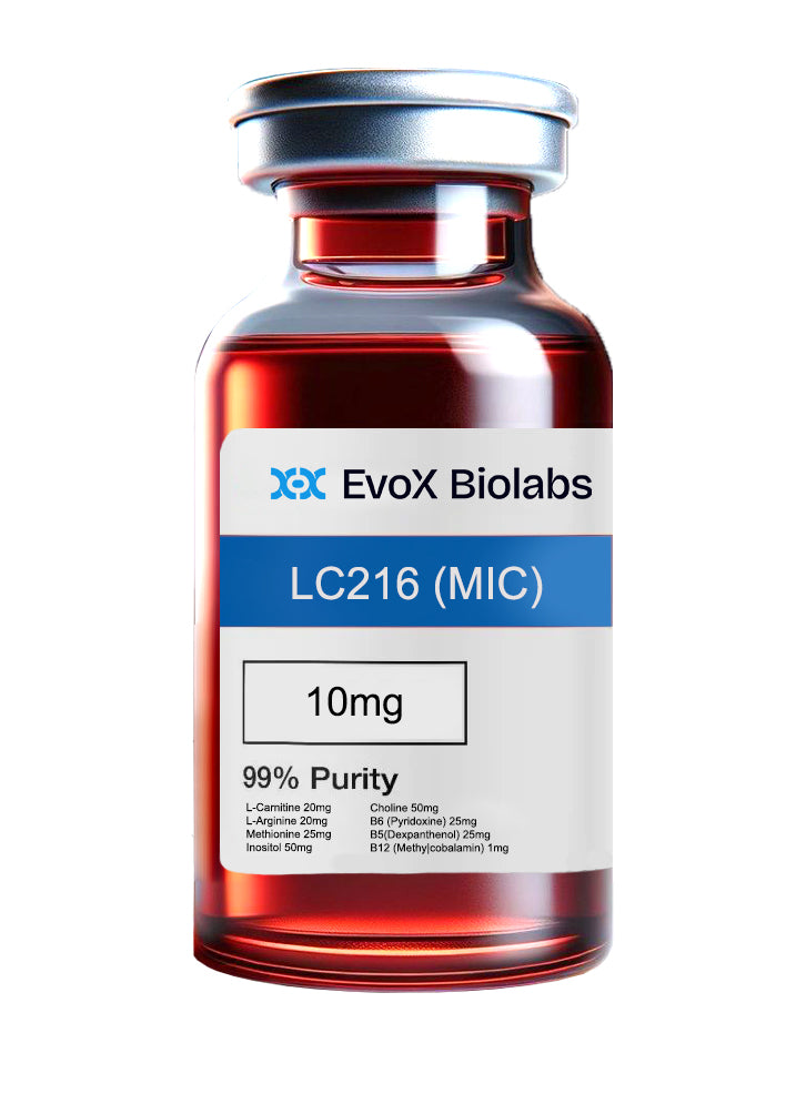 A LC216 (MIC) injection, also known as a lipotropic injection, is a combination of nutrients and compounds designed to support fat metabolism, energy production, and overall wellness. The specific formulation you mentioned includes L-Carnitine (20mg), L-Arginine (20mg), Methionine (25mg), Inositol (50mg), Choline (50mg), Vitamin B6 (Pyridoxine, 25mg), Vitamin B5 (Dexpanthenol, 25mg), and Vitamin B12 (Methylcobalamin, 1mg). Here’s a breakdown of its purpose and benefits: